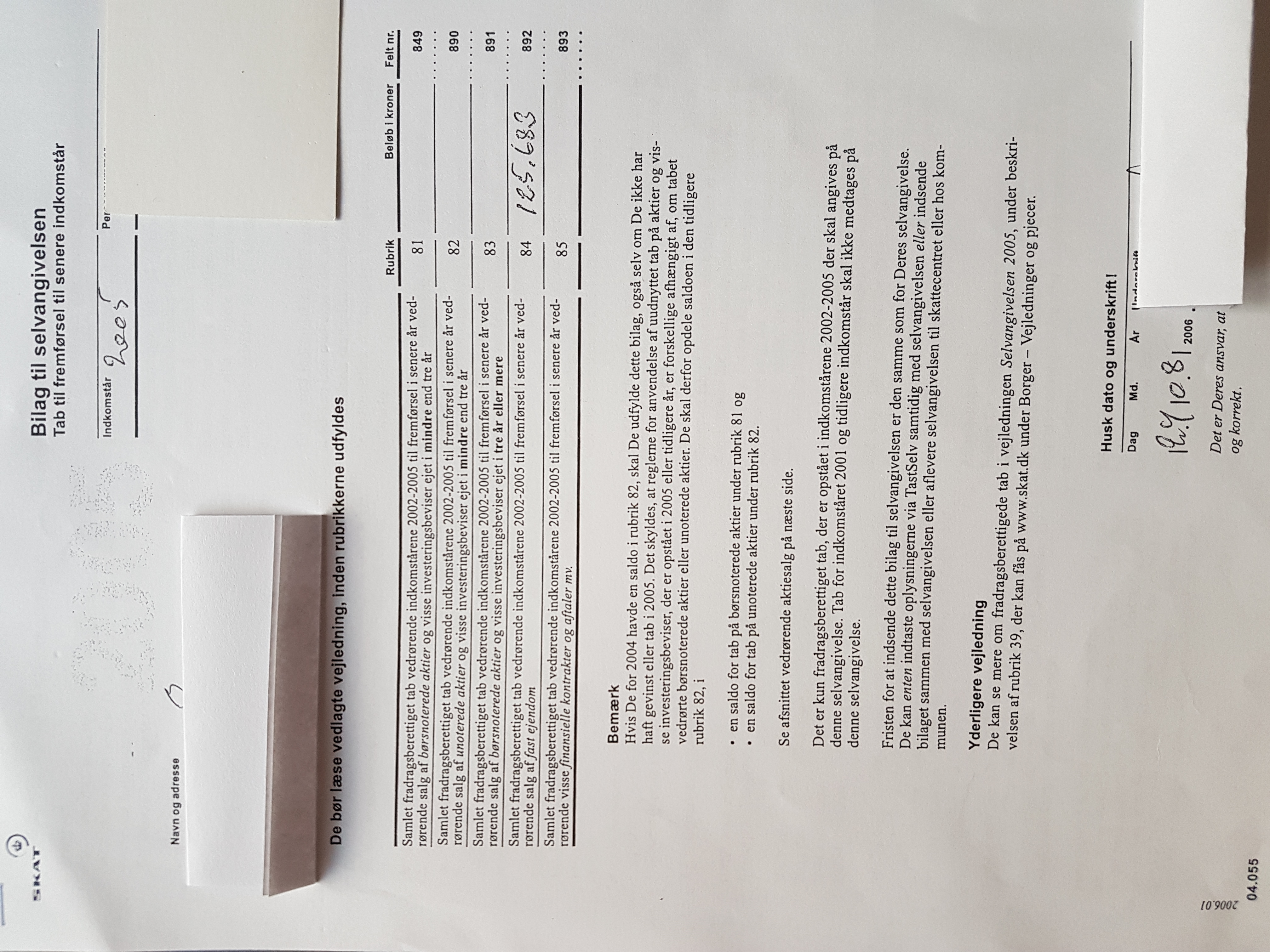 I 2005 lukkede min far sin enkeltmandsvirksomhed (Virksomhedsordning) og solgte bygningerne. Bygningerne blev dog solgt til en pris, der lå under, hvad de var skrevet ned til i regnskabet hvorfor min far fik et fradragsberettiget tab, hvilket han dog ikke kunne udnytte. For det første havde han ikke længere virksomheden og for det andet kunne fradraget kun benytte i samme aktiv type, som jeg forstår det.