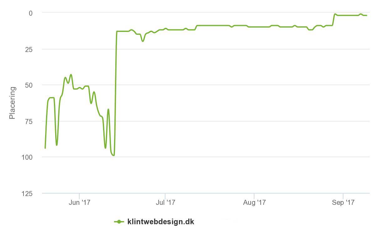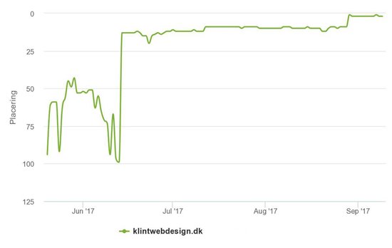 "ny hjemmeside" svingede fra nr. 50 til 99 på 2½ måned kom det op nr. 2, hvor det nu har ligget i 11 dage.
