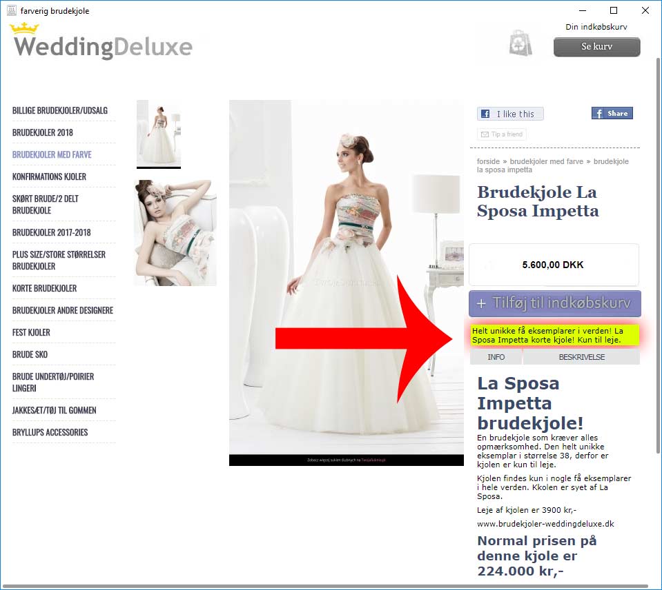 Jeg gjorde blot opmærksom på, at du har modstridende oplysninger på den pågældende side http://brudekjoler-weddingdeluxe.dk/product_info.php?cPath=58&products_id=97669600&osCsid=bb83d808c123fb938f60a2d47f987e07. Se også billede nederst