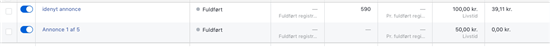 Jeg kan se, at du i hvert fald har brugt penge på den ene annonce; og derfor har du blot ikke fået nogle klik, konverteringer, leads eller hvad du nu går efter.