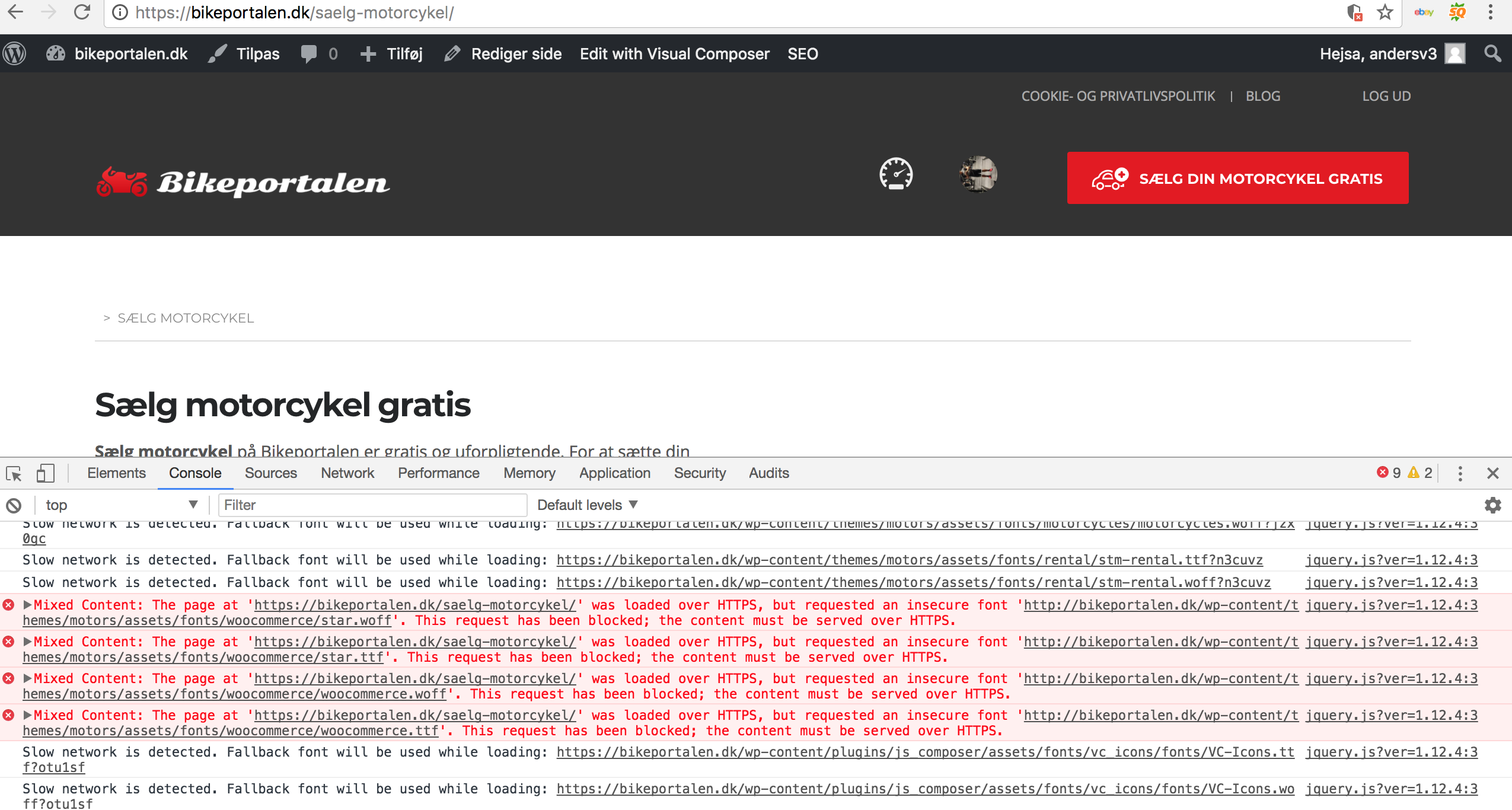 Hej alle sammen. Jeg får HTTPS fejl på mit site bikeportalen.dk, som i kan se på det vedhæftet billede. Nogle der kan fortælle mig, hvordan jeg fikser det? |