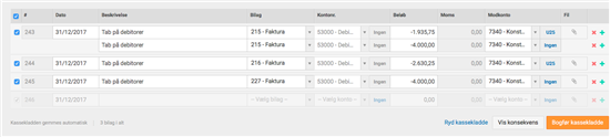 Dinero, registrer tab på ubetalt faktura.