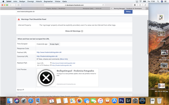 Hej Aminoer Hvordan ændre jeg billeder på facebook når jeg linker til min side - Nu er der begyndt at komme et kryds frem som om ( billedet findes ikke ) , hvordan får jeg det redigeret så det bliver et billeder jeg selv vælger igen? |