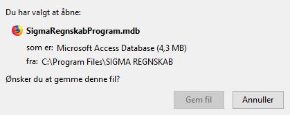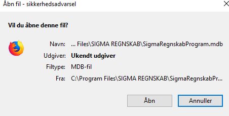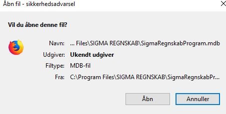 Jeg har i flere år anvendt Sigma som bogføringsprogram til at udarbejde årsregnskab. Det er gået rigtig godt - indtil nu. Jeg har fået ny PC og ville downloade programmet igen til denne. Men programmet opfører sig mærkeligt når det er installeret: Normalt plejer IKON for SigmaRegnskabsProgram at være som det ved SigmaRegnskab. Nå så jeg prøver at åbne SigmaRegnskabsProgram, så får jeg denne: Den fik jeg dog også før. Trykker jeg "Åbn", så kommer denne meddelelse: Den fik jeg ikke før, på den tidligere PC. Jeg har installeret Micrsoft Acces Runtime 2010, som programmet kræver. Herefter sker der ikke mere. Jeg har prøvet at sætte harddisk, fra den tidligere PC (hvorpå programmet virkede), i min dockingstation, her får jeg nu også de samme meddelelser. Jeg har bogført 3/4 af mit netop afsluttede regnskabsår i Sigma. Hvem kan løse denne knude? Tak på forhånd. |