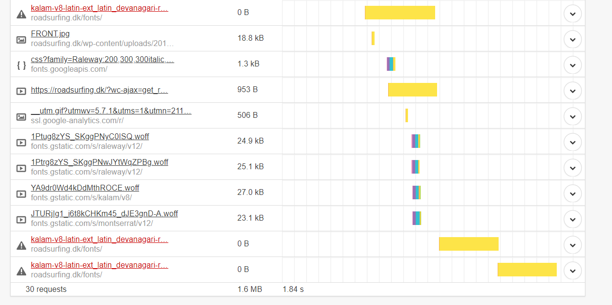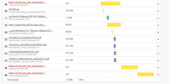 Fredholm93:2. Siden loader '?wc-ajax=get_refreshed_fragments' som angiveligt skulle have en forbindelse med woocommerce kurven og den har hele 0,5 sek wait time. Jeg har læst mig til at man blot kan fjerne kurven, men det ønsker jeg umiddelbart ikke, da den jo er et vigtigt redskab i forbindelse med købsoplevelsen på siden. Det kan vel ikke være rigtigt, at noget så stort som woocommerce ikke er bedre optimeret mht. dette?