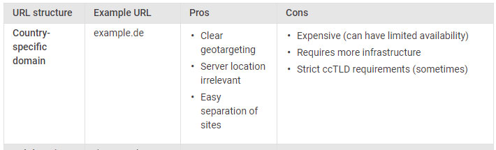 Som du kan se på grafikken her, så har landespecifikke domæner den fordel hos Google at de som udgangspunkt er Geotagget til et bestemt land. Der er andre domæner som er tagget til specielle lande, f.eks. .london osv.