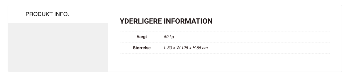Til sidst, så ser yderligere information lidt tomt ud - Her forventer jeg som kunde også lidt mere. Jeg vil vide 100% hvad jeg bruger 3.000 kr. på over nettet.