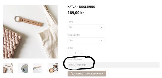 Derfor efterspørger jeg et plugin, hvor jeg kan lave et felt, hvor kunden kan indtaste den ønskede personlige tekst.
