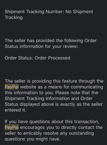 Har solgt en online ydelse som kunden har betalt min faktura derinde, paypal beder mig om at smide en sporing nr på forsendelse? Smider en manuelt ind, hvor der står " Den er behandlet " De sidste 3 dage har den bare skrevet dette her
