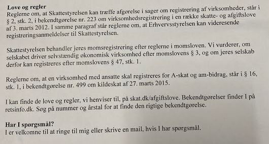 Efter at revisoren kom i kontakt med SKAT, blev de sat i orden.