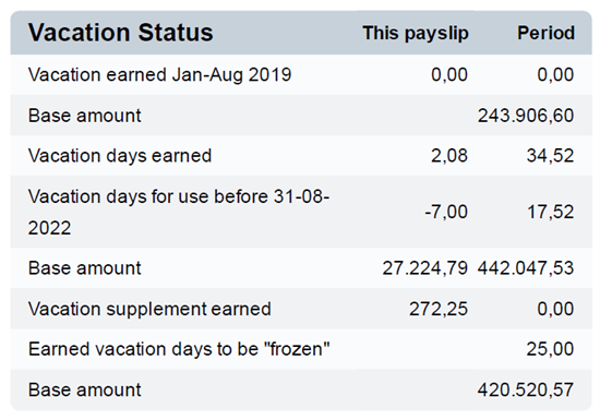 Kender ikke Intect men du må jo have beløbet stående i status som gæld til indefrosne feriepenge (det har der vel være instruks om hvordan i programmet da de blev afsat)