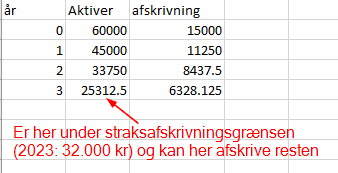 jeps - og måske straksafskrivningsgrænsen er under de 33.750 ud fra 2 så måske der straksafskrivning