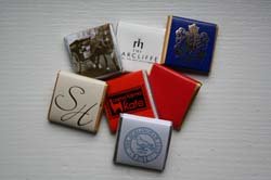 Tilbud på levering af chokolade med eget logo på folie lavet med hotfoilpræg.