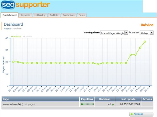 Hej Jhansen tak for denne , kan kun tilslutte mig din ros af SEOsupporter.com bruger selv dens functioner til at overvåge de keywords jeg ønsker at fremhæve på mit site. og er super imponeret...