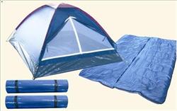 Ellers er specifikationerne som følger: Telt: Mål: 200 cm. x 180 cm. x 105 cm., Materiale: 100% polyester Soveposer x 2: Mål: 170 cm. x 70 cm., Fyld: 100g/m2 polyester Liggeunderlag x 2: Mål: 180 cm. x 50 cm. x 0.6 cm., Materiale: EVA.