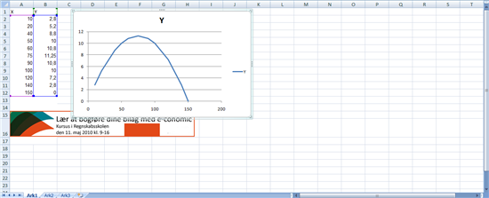 Jeg skulle tegne et koordinatsystem og gik ud fra, at det går helt uden problemer i Excel. Men jeg kan ikke finde ud af det. Kan Excel ikke tegne en x- og y-akse og plotte følgende tal ind for mig?