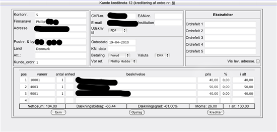 Du kan også se at at dit dækningsbidrag og dækningsgrad er negativt - dvs du mister penge ved at tage varerne retur, da din fortjeneste falder bort.