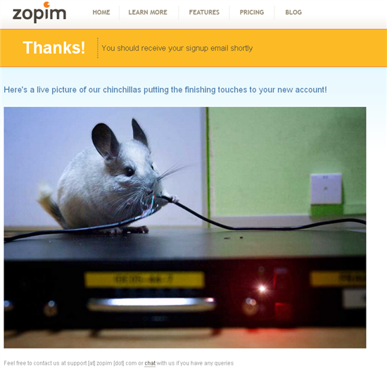 Jeg sidder lige og roder med lidt livesupport, og er så igang med at oprette en konto på www.zopim.com , da jeg efter oprettelse bliver ramt af dette billede: