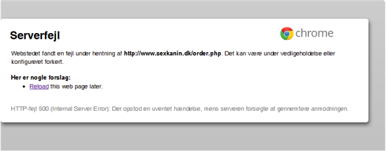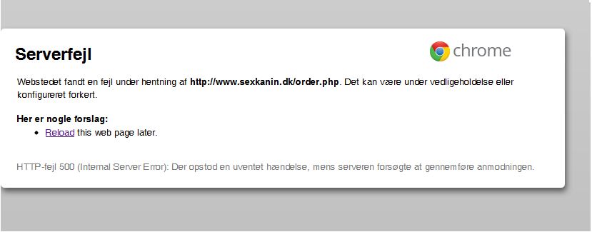 Jeg har et stort problem med min side. Den kommer med nedenstående fejl, når man vil prøve at bestille noget inde fra mig. Det er lige før betalingen. Prøv evt. at smide noget i kurven og så bare lav en testbestilling.