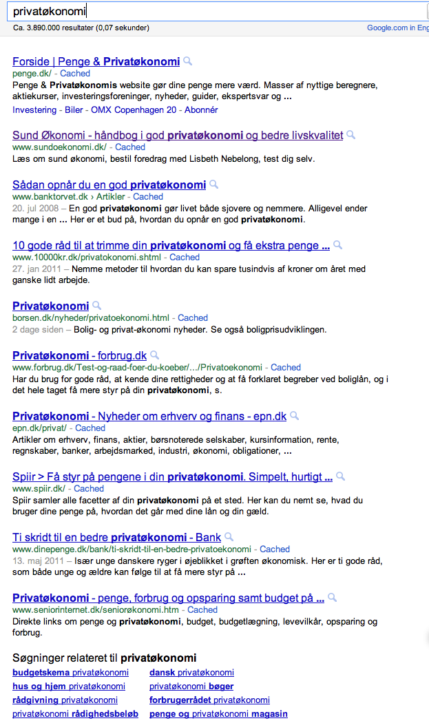Er lige komemt hjem fra en fed ferie på Mallorca og skulle lige checke placeringen for min side om privatøkonomi. Nr. 2 på Google på ordet "privatøkonomi"!! Det havde jeg sgu' ikke lige regnet med. Børsen og Penge og Privatøkonomi er hermed overhalet...