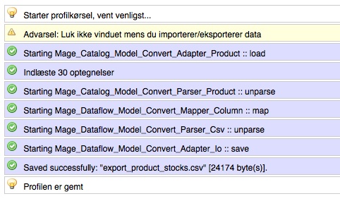 Kære Aminoer. Jeg sidder og har problemer med exportfunktionen i Magento. Jeg vil gerne eksportere en række produkter til en lokal csv-fil. Problemet er at når pop-up vinduet åbner så sker der ikke rigtigt noget. Vinduet viser med det samme billedet her men der lægges ikke nogen csv-fil på den angivende sti: var/export Kan i hjælpe mig? Vh. Mads |