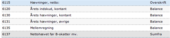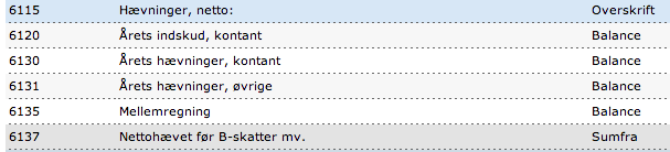 Tusind tak for dit hurtige svar. Jeg kan ikke finde konto 6120 under min kontoplan, selvom jeg har valgt "Enkeltmandsvirksomhed uden løn" som standardopsætning. Men jeg vil selv oprette den så "Årets indskud, kontant". Nøgletalskoden formoder jeg er "Privat indskudt/hævet". Typen er "balance" og momskoden "U25". Som modkonto vælger jeg med det samme Konto 6135 "mellemregning", eller skal jeg blot undlade at skrive noget som modkonto ved oprettelsen? Efterfølgende kan jeg så oprette en postering direkte til konto 6120 fra konto 6135?