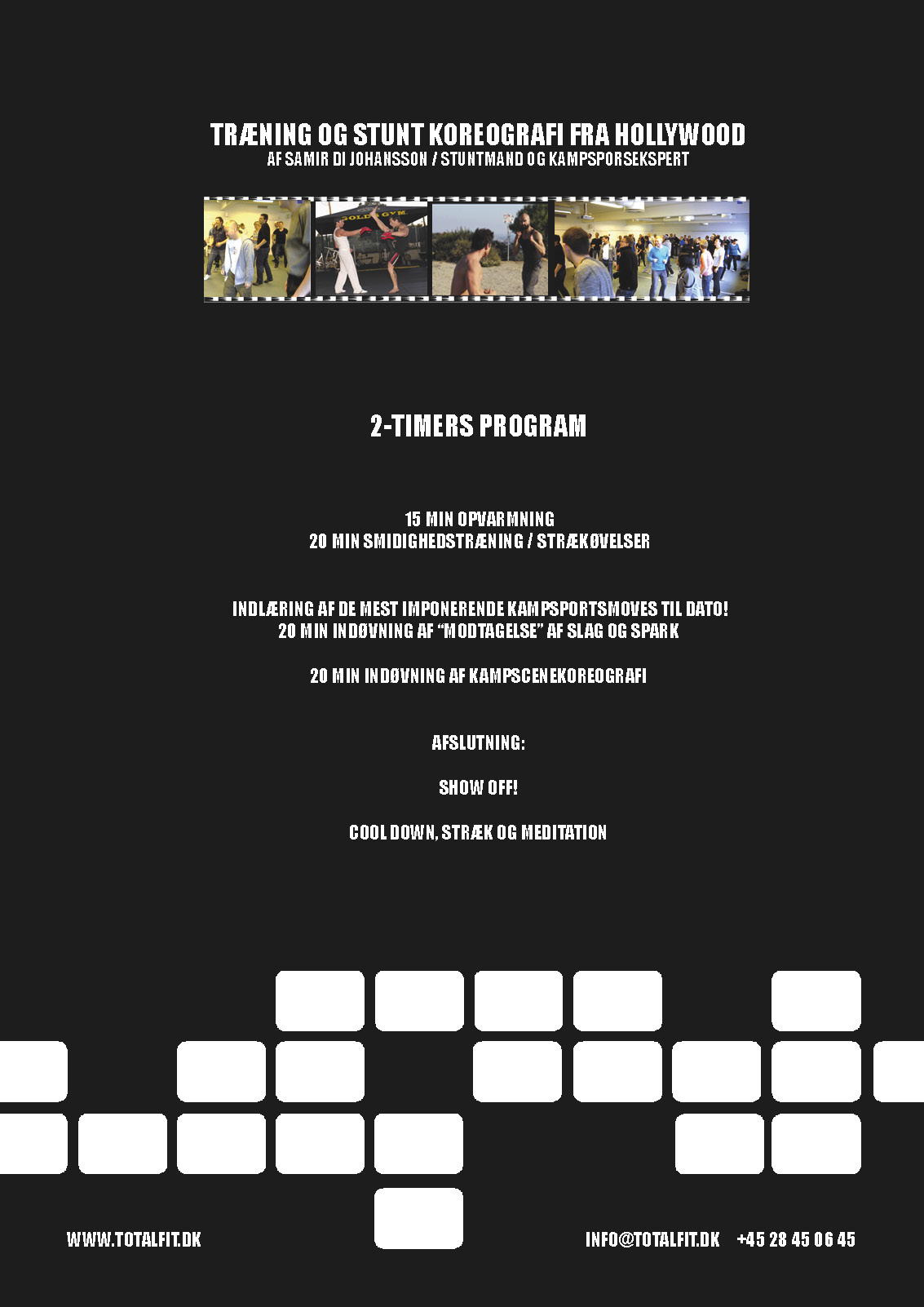 Vi kører simpelthen tempoet og motivationen op i DIN virksomhed. Skal du og dine medarbejdere have en "SHOW" dag, hvor i lærer hinanden og kende fra en helt ny og spændende vinkel, og trænger i til et afbræk i den trivielle hverdag, er det her hos TOTAL FIT det sker.