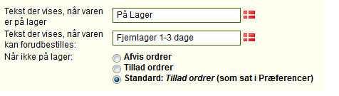 Hej Aminoer, Jeg har opdaget et lille problem på vores webshop. Ude i produktlisten vises teksten På lager ved alle produkter (gælder dog ikke dem der bliver udsolgt via shoppen) Jeg vil gerne kunne få den status jeg selv skriver frem når jeg udfylder felterne: Når produktets antal på lager = 0 skal tekst være = "Fjernlager 1-3 dage) Nogen der har et bud på hvordan dette kan løses? De bedste hilsner Chris Nielsen :) |