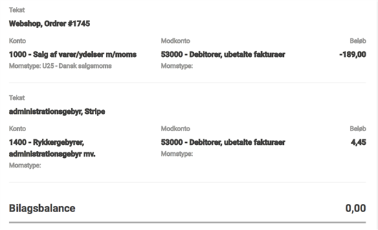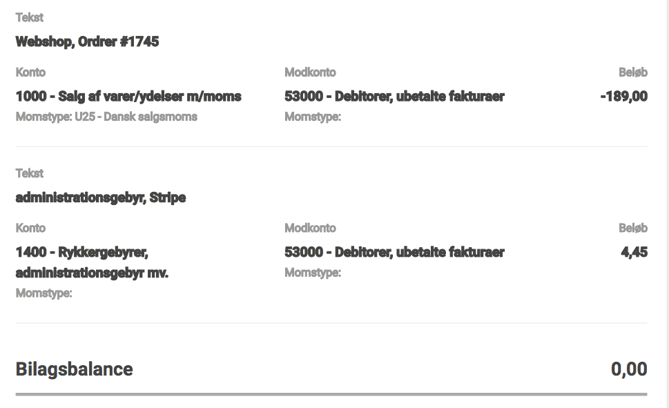 Det kan jeg ikke overskue du men hele salget mod modkonto stribe og så når gebyr kommer fra stripe gebyr i drift mod stripe konto