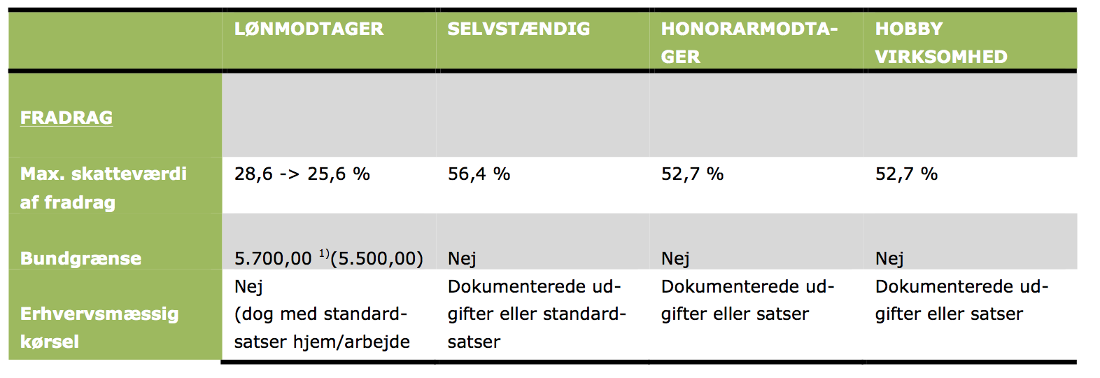 Tusind tak for svar John. Det er korrekt at en del af firmaets indtægter måske 30%, er momsfritaget. Ang. fradragets skatteværdi, kunne det være ret interessant at finde ud af om man kan få det sidste fradrag med, ved overgangen til at blive selvstændig.
