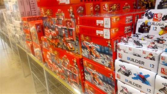 Jeg var netop i Harald Nyborg i Hillerød og lige indenfor indgangspartiet var der en kæmpe udstilling med kopi-Lego.. Ikke bare lego lignende plastic klodser, men 1:1 kopier af grundklodserne.. Figurerne var anderledes og døre og vinduer osv. var en lille smule ændret.