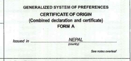 Jeg har vedhæftet et udsnit af dokumentet. Det er Form A som skal anvendes. Hvis de ikke ved hvad det er, er de nok ikke vant til at eksportere. Har de overhovedet lov til det? Nepal er meget bureaukratisk. |