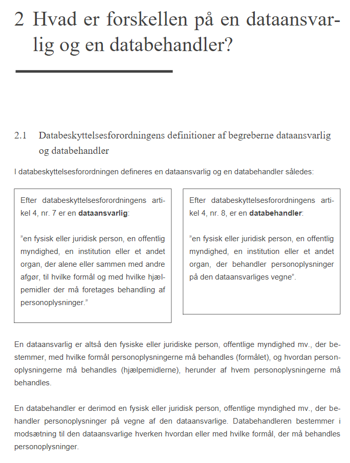 Jeg troede egentlig at skildringen mellem dataansvarlig og databehandler var relativt nem. Som ejer af en webshop anså jeg mig selv som dataansvarlig for alle de tjenester jeg køber mig til, mens disse så ville være mine databehandlere og der derfor om nødvendigt måtte udarbejdes databehandler aftale.
