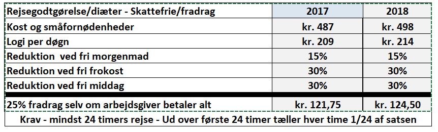 Enten eller - dog kan du godt vælge at lade dit firma betale f.eks overnatning efter regning og tage resten som diæt - se billedet for mere. Der er et max på 27.400 per år for diæterne