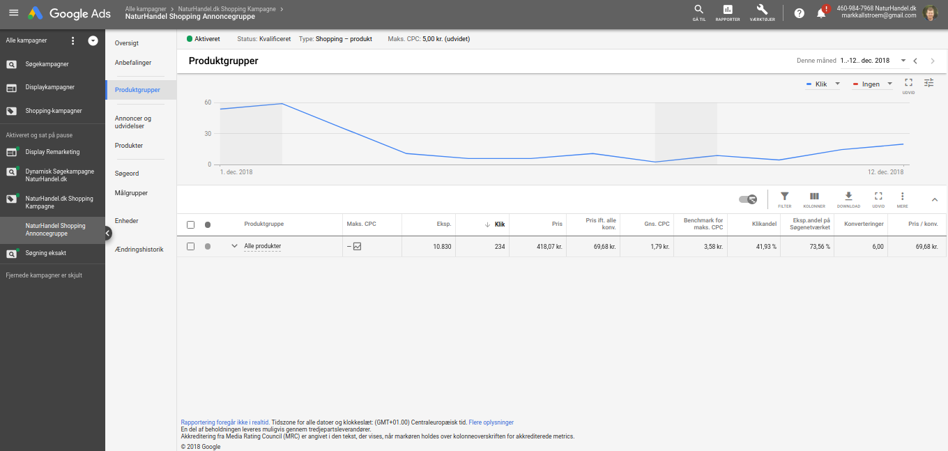 Som sagt handler det om at bygge en god struktur på tværs af hele kontoen, så du har styr på dine kampagner, annoncegrupper og produktgrupper.