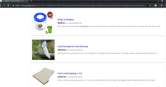 Hej :) Jeg har tidligere brugt et "Bundle" plugin, som bl.a. Beeketing etc... - Et plugin hvor jeg kan samle forskellige produkter i én pakke og sælge dem til en billigere pris... Det fungerer bare ikke sammen med Google Ads, som indlæser nogle mærkelige priser... F.eks. som på billedet herunder et Sommerfuglenet til 160,92 kr. - Det må være fordi den har registreret en anden pris et eller andet sted.. Jeg skal have slettet de her alternative priser... Så der kun hentes den pris som produkterne står til på hjemmesiden... Hvordan gør jeg det? Hvor i systemet skal jeg hen og finde det? |