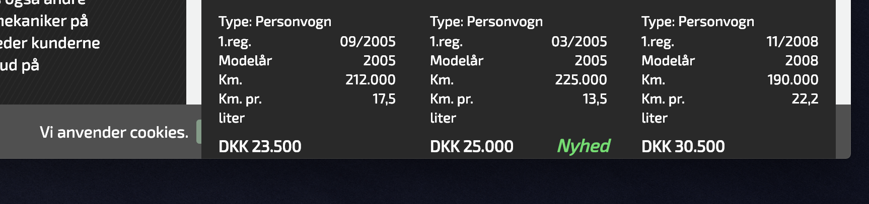 Lad os starte fra bunden af... De der tre åbnings tider og salg... Også den der er ude i ventre siden... Lav den på en lige linje... Så det ser lidt pænere ud... Hvis vi ser på toppen af websitet... Ville jeg nok rygge kontakt os ude i højre side...