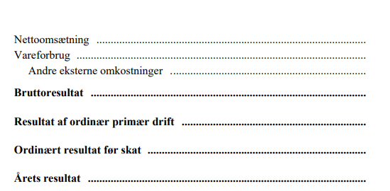 Hey er i gang med at indberette regnskab med virk.dks Regnskab 2.0 basis. Nu kan jeg ikke huske meget fra virksomehedsøkonomi, men mindes at Bruttoresultat = nettoomsætning - vareforbrug og ikke Bruttoresultat= Nettoomsætning-vareforbrug - andre eksterne omkostninger Som virk viser det. Er det mig der tager fejl? :) //nikolaj |