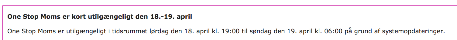 Tidligere skulle jeg indberette One stop Moms hos skat ved CSV fil. først gav den fejl pga. manglende semikolon i slutningen af hver linje, som ikke fremgik af deres Word dokument (dokumentation). Så begyndte den at sige at lande som Østrig (AT) Cypern (CY) ikke er en del af EU, så jeg kan ikke indberette?? prøvede så at ringe til dem i dag, hvor den gik direkte til “vi er optaget, prøv igen senere” ingen kø eller noget. What the fu.. ? er der andre med lignende problemer, fristen er den 20, men det er lidt svært hvis man ikke kan indberette. |