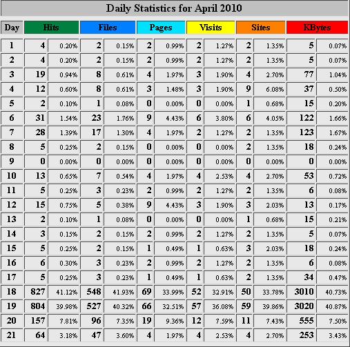 Sale is the website and domain www.TweetSearcher.info This site is very cool twitter search site!. Jeg sælger den fordi har andre større hjemmesider som jeg skal være færdig med, skal oplyse at du for det hele med til den. Du kan overtag min gratis webhotel! Kontakt mig på " Aggerpetersen@gmail.com " hvis du ville høre mere om siden eller noget andet. BYD BYD BYD Daily Statistics for April 2010