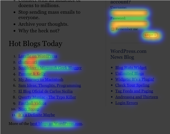 Et heat map er en grafisk måde at synliggøre hvordan folk klikker på et website.